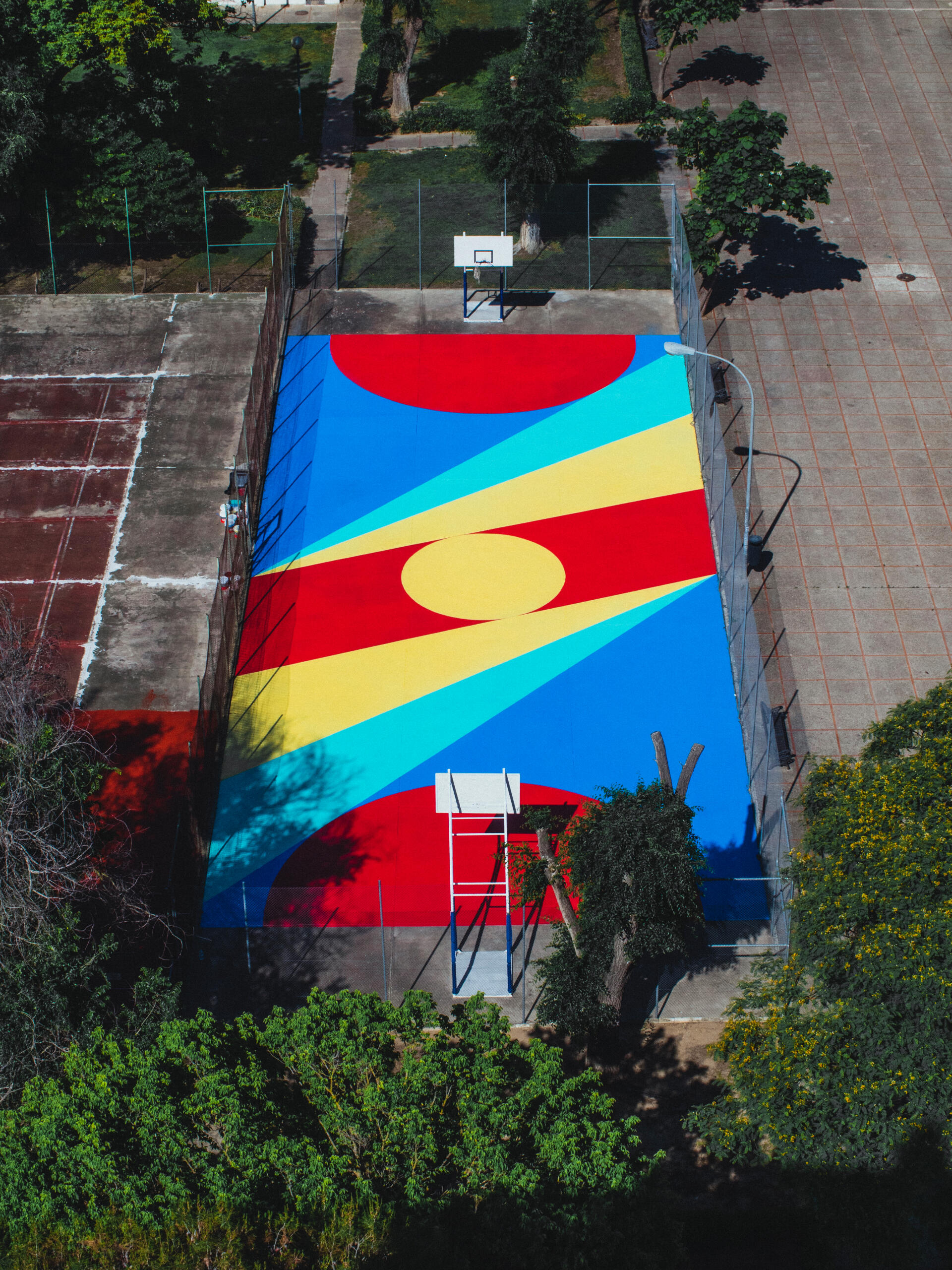 entornos diversos, como pistas deportivas o espacios en blanco,